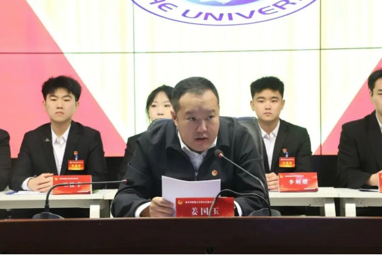 姜国玉代表学校党委向大会的胜利召开表示祝贺。姜国玉指出,过去一年,校学生会在学校党委领导与团委指导下,紧扣学校重要部署和重点工作,发挥桥梁纽带作用,精准对接边疆青年成长需求,全心全意为学生服务。他希望全校青年学生与学生会组织要坚定理想信念,把稳青春航向,立足边疆高校定位,践行“身在最北方、心向党中央”的忠诚品格,以家国情怀定位青春坐标,将个人理想融入中国式现代化伟大实践;要练就过硬本领,夯实成才之基,自觉将所学知识技能与边疆地区发展、国家战略需求紧密结合;要勇于实干担当,展现青春作为,投身学校高质量转型发展、龙江全面振兴全方位振兴和民族复兴的火热,用实实在在的行动践行“强国有我”的青春誓言。