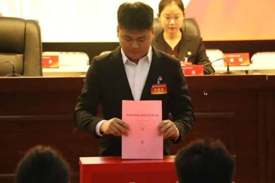 在闭幕式上,与会代表审议通过《黑河学院第二十八届学生委员会工作报告(草案)》;黑河学院第二十九届学生委员会委员选举监票小组名单(草案);《弘扬奋斗精神,勇担时代使命——黑河学院学生会工作高质量发展的实施方案(草案)》;选举黑河学院第二十九届学生委员会委员;宣读黑河学院第二十九届学生委员会委员选举结果。黑河学院第二十九届学生会副秘书长肖尧致闭幕词。